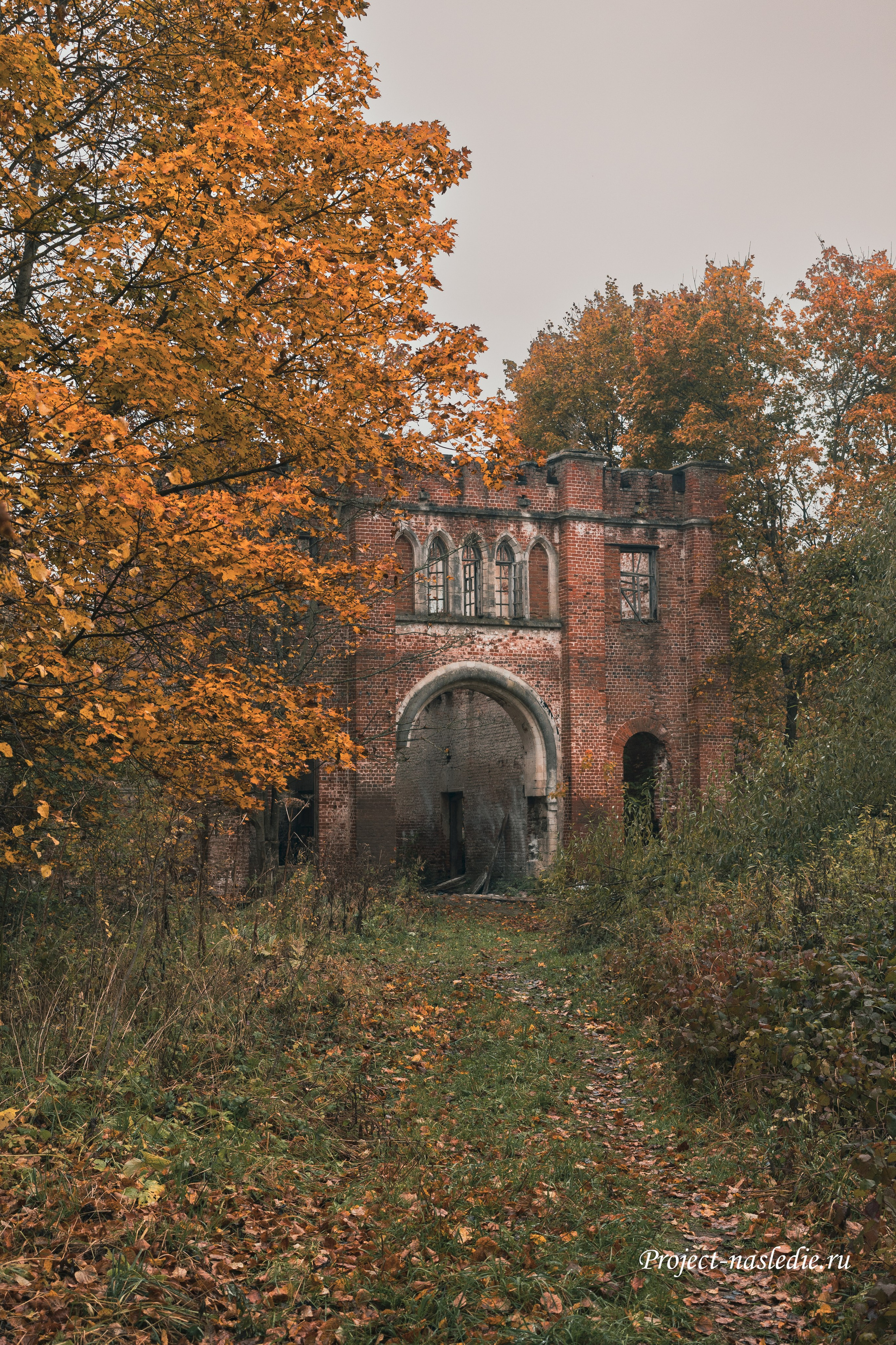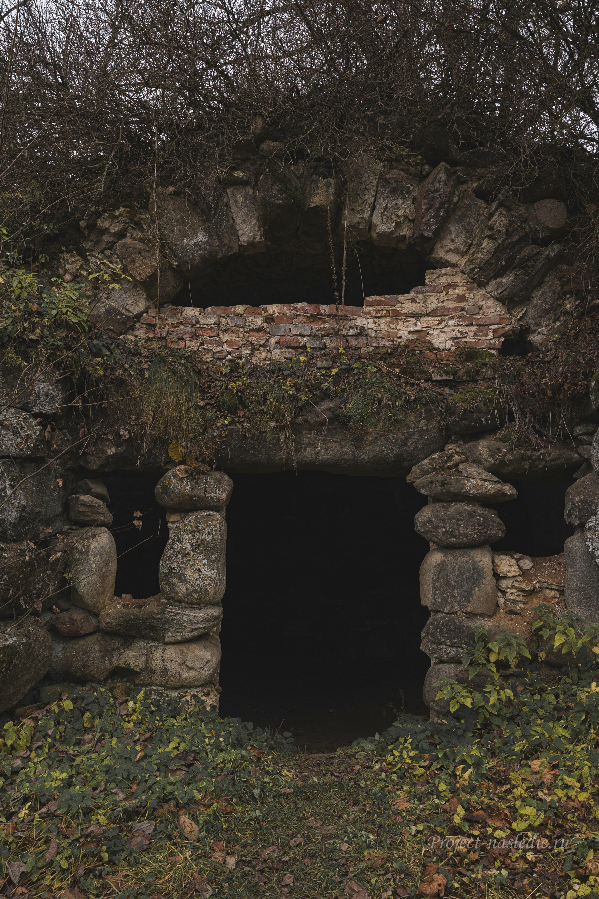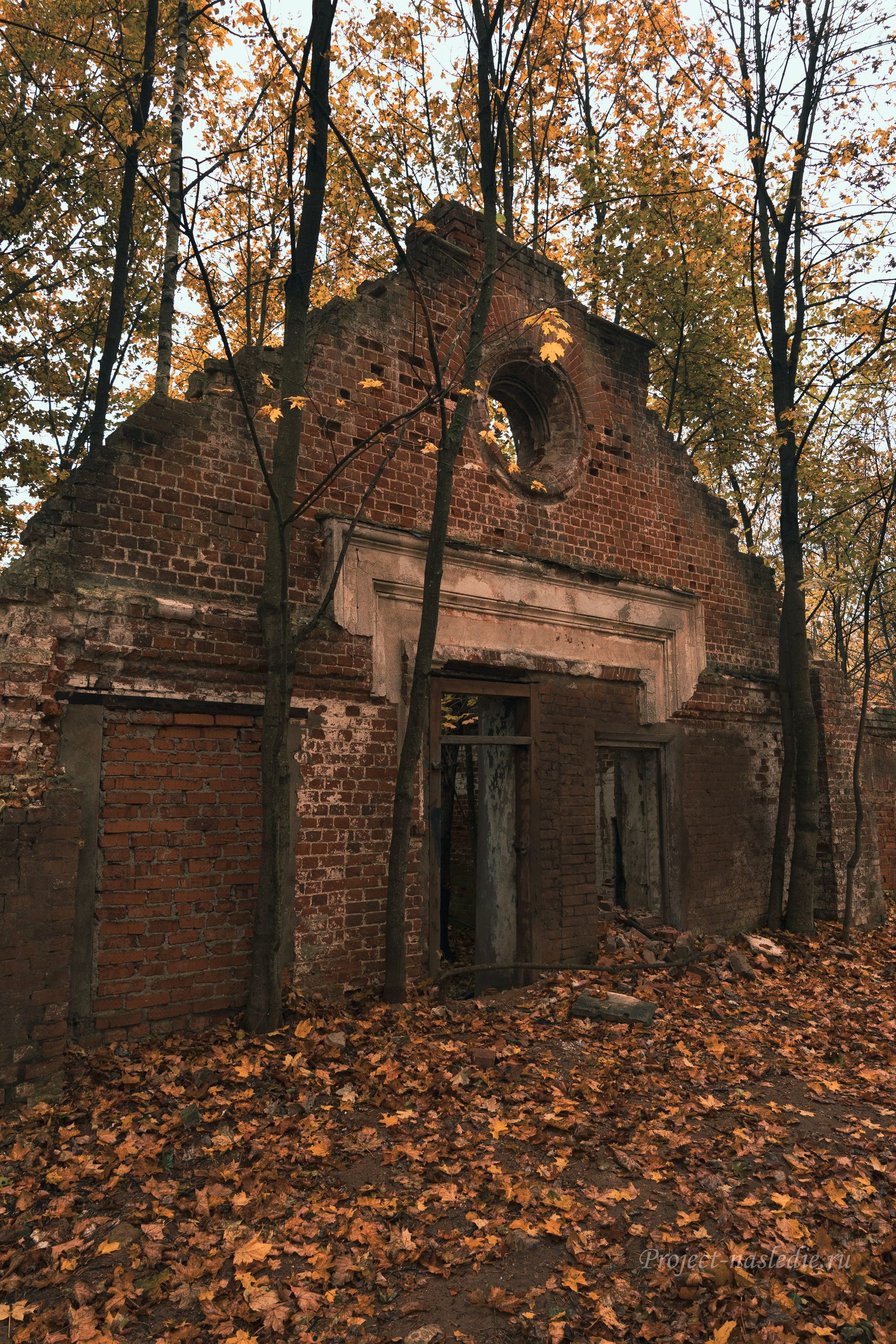 Когда-то это был роскошный ансамбль с храмом, каменными воротами, флигелями, театром, обелиском и большим парком. До наших дней уцелели лишь отдельные фрагменты усадебного ансамбля — величественная парадная арка, когда-то встречавшая гостей, и один из подземных ходов, уходящий вглубь под территорию бывшего парка.