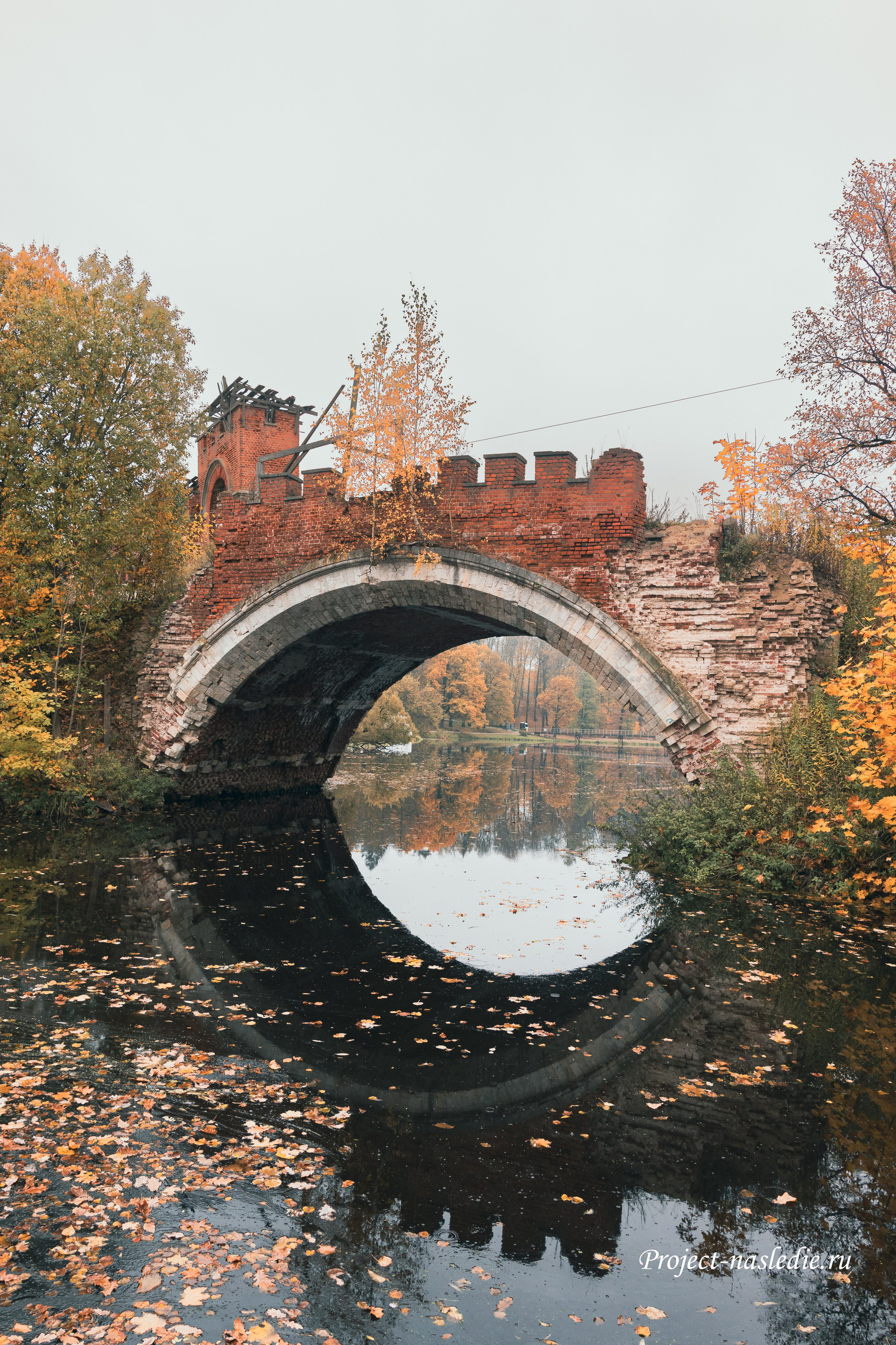 Двухарочный псевдоготический мост в усадьбе Марфино, возведённый в XVIII–XIX веках и перестроенный архитектором М. Д. Быковским, остаётся одним из самых живописных уголков подмосковной усадебной архитектуры. Сейчас он заброшен, и его каменные арки создают атмосферу старинных руин, будто сошедших с полотен романтиков.